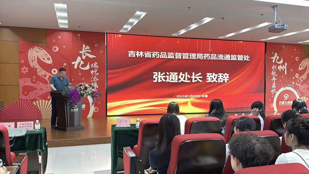 吉林省药品监督管理局药品流通监管处张通处长出席会议并致辞,他强调,省药监局严格落实国家药监局开展的“药品经营环节清源专项行动”部署,聚焦三大关键领域保持高压严打态势,严打非法购销渠道,确保‘票、账、货、款’一致,阻断来源不明药品流通;严查制售假劣药品行为,对篡改数据等实施穿透式监管;严整网络售药乱象,杜绝无资质售药、处方审核不严等问题。他强调各企业必须筑牢主体责任,构建全流程质量管理体系,严格资质审核,加强药品追溯管理,省药监局对违法行为将实施‘一案多查、联合惩戒’,坚决守护群众用药安全底线。